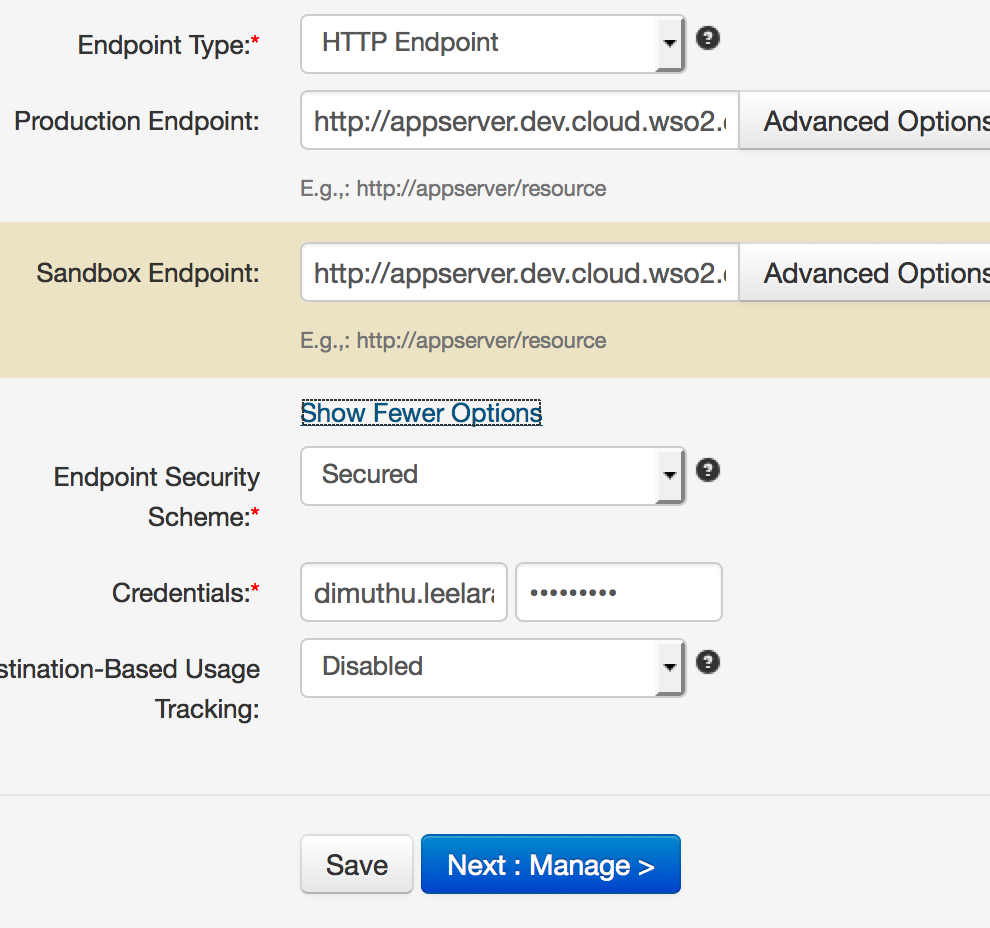 "https://appserver.dev.cloud.wso2.com/t/perftest/webapps/securedjrs-default-SNAPSHOT/services/customers/customerservice/customerservice/customers/123 The trickiest part is figuring out the username. The "@" sign in the email address must be replaced with a "." and the tenant domain must be appended with the "@" sign.