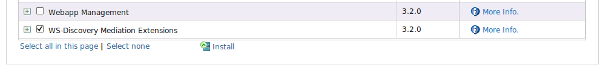 6. Scroll down to locate the WS-Discovery Mediation Extensions plug-in. Check the box next to it and click Install. This will start the plug-in installation wizard.