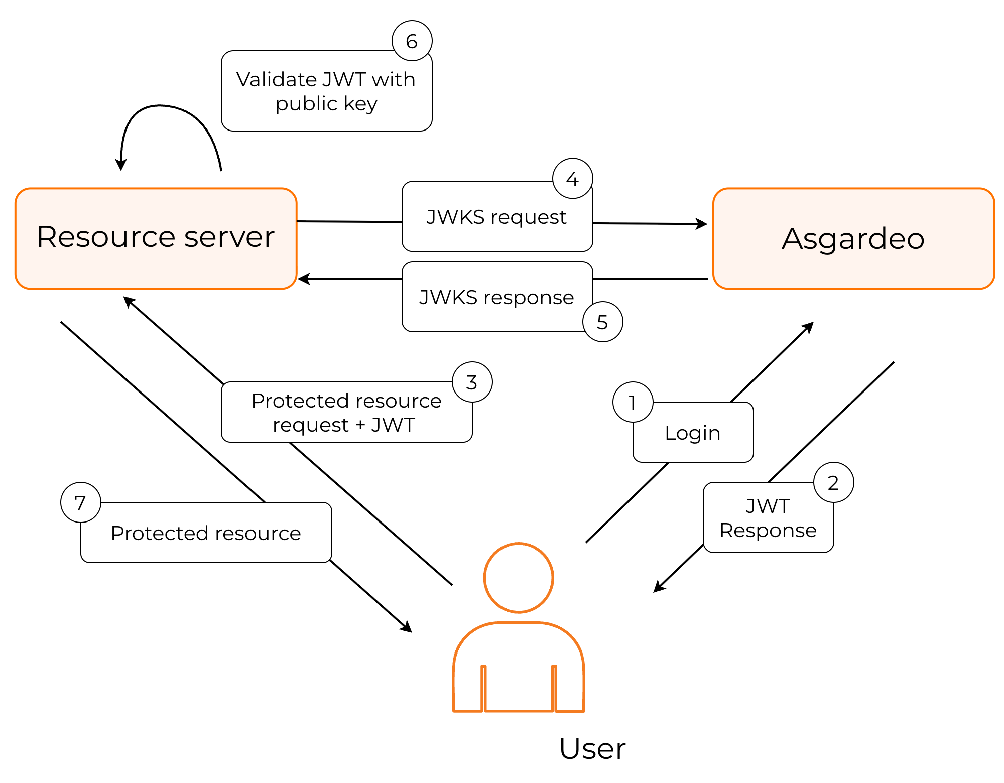 In this instance, Asgardeo works as the JWT validator. The following diagram explains this process.