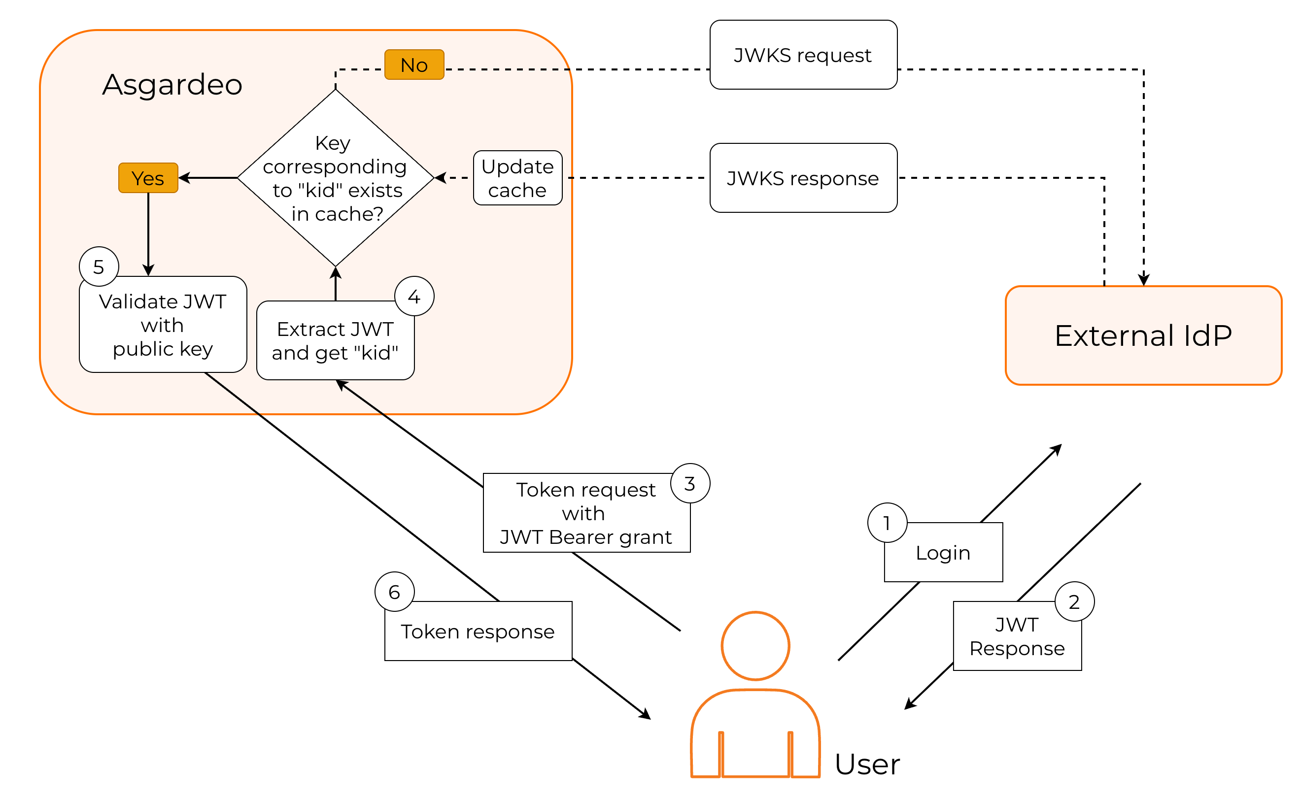 If the key is not cached, Asgardeo retrieves the JWKS from the external IdP and updates the cache.
