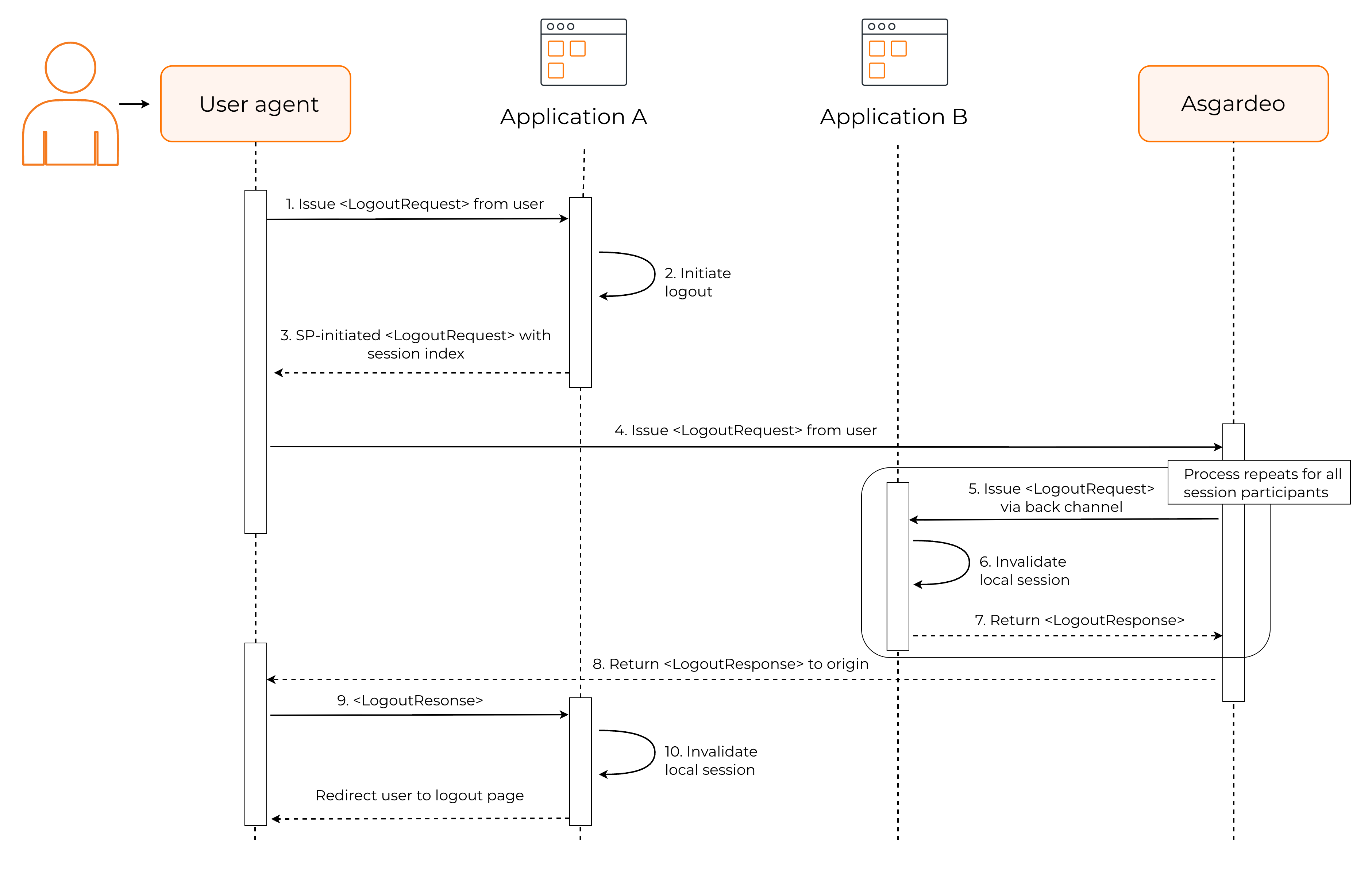 Once all other applications send back their logout responses, the IdP sends a logout response to the primary SP (Application A) that initiated the request.