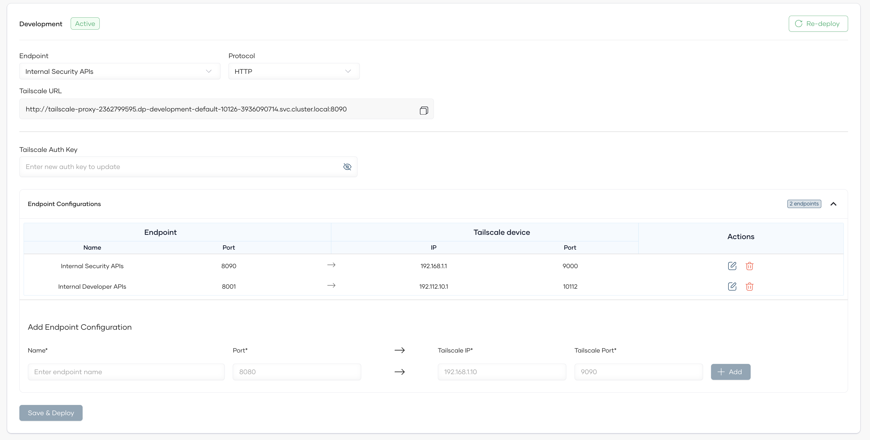 ii. In the "Add Endpoint Configuration" section of the Tailscale proxy interface, fill in the following fields:
