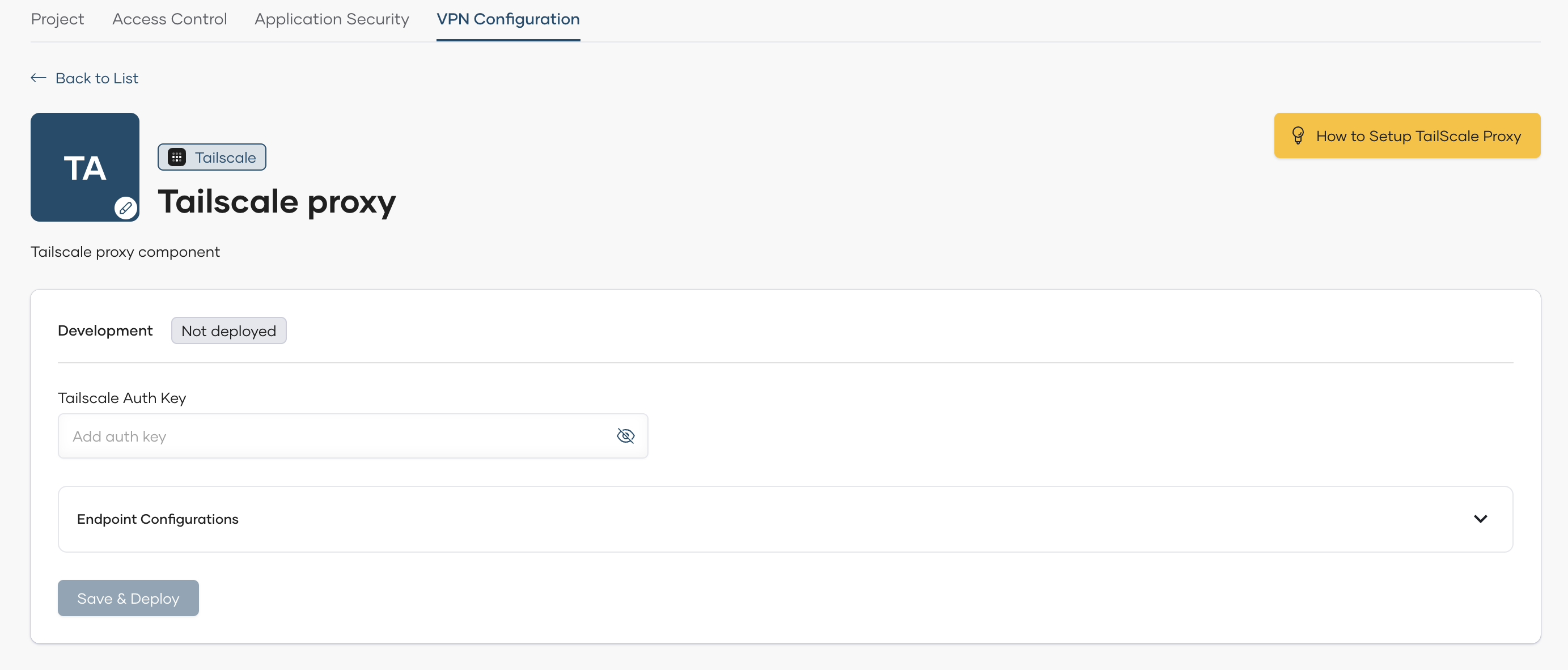 Click Save & Deploy to apply configurations and deploy the tailscale proxy.