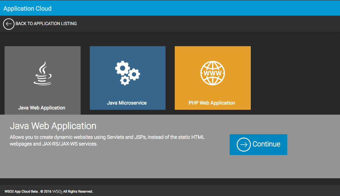 - Broader runtime choice: with the new architecture it becomes easier for us to expand to a bigger set of supported runtimes. Besides Tomcat/WSO2 App Server-based Java, we already are offering microservices (MSF4J), and PHP, with more to come in the future.