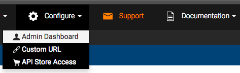 1. In API Cloud’s Publisher interface, on the Configure menu, click Admin Dashboard: