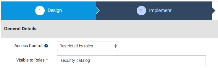 - Ask the teams to set their APIs' Access Control setting to Restricted by roles, and then provide their role name in the Visible to Role field (both of these can be found at the Design step of API editing):