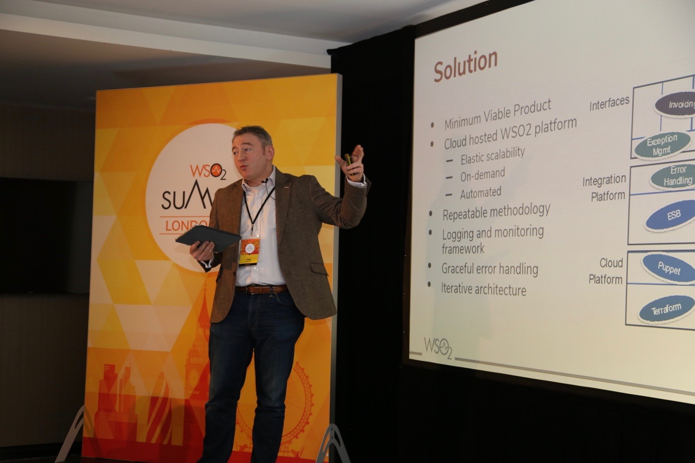 The other success story was presented by Wheeve (a WSO2 Partner), on how they used WSO2 technology to deliver business value for one of their customers in the engineering industry. Jack Hanison, CTO and Co-Founder of Wheeve, described how their customer faced certain data matching issues in several operational areas, which eventually had an impact on their financial reporting, revenue recognition, and overall customer perceptions of the organization. A cloud hosted WSO2 platform was used to overcome these challenges and improve business operations - resulting in cost savings for the organization.