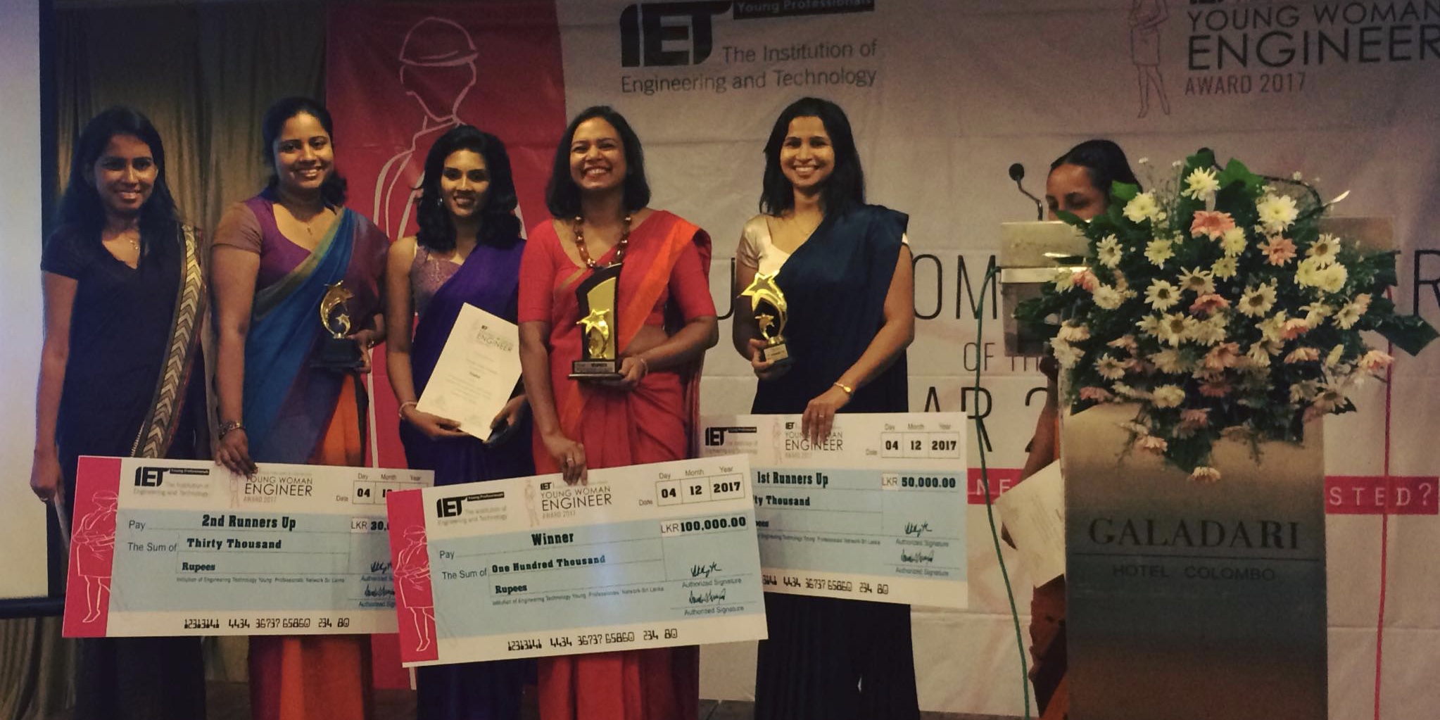 Seshika, 2nd from the right, Winner of the Young Engineer of the Year award for 2017 by IET Young Professionals-Sri Lanka