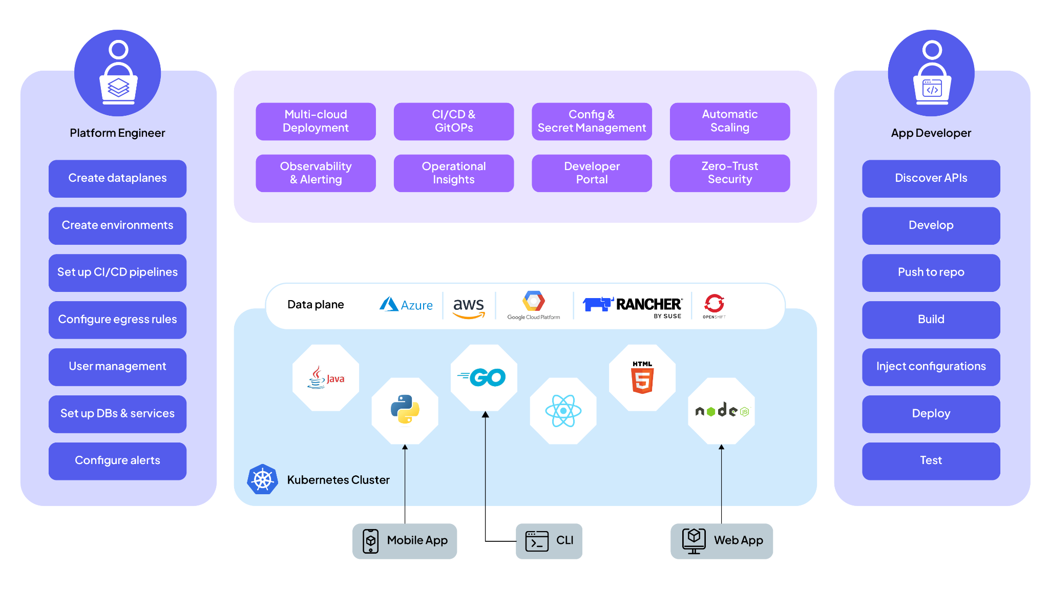 - Multi-Cloud Kubernetes: Easily deploy cloud-native applications across Azure, AWS, GCP, or your Kubernetes clusters.
