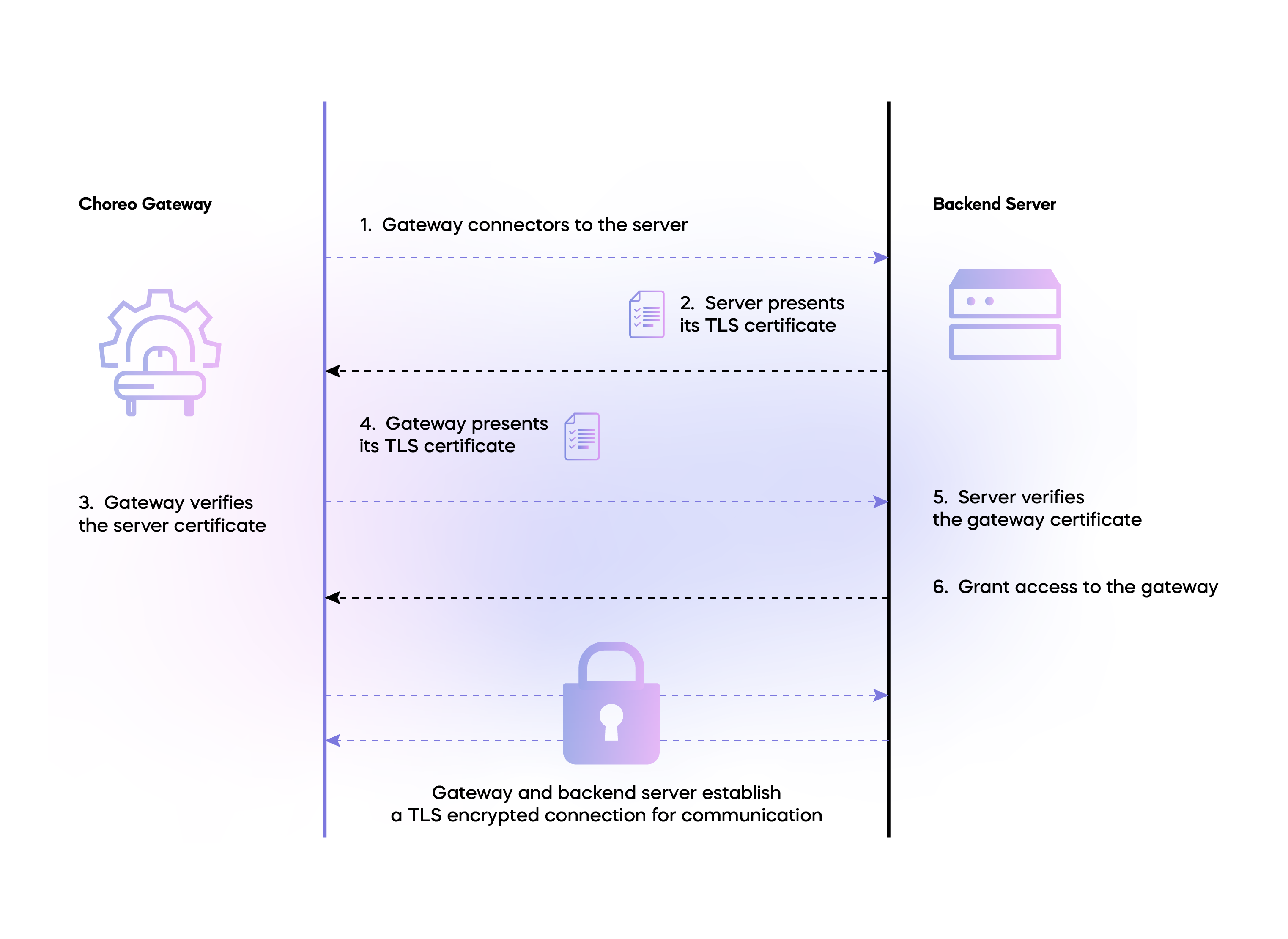 To establish secure communication between the WSO2 Developer Platform Gateway and your backend, you can configure mutual TLS.