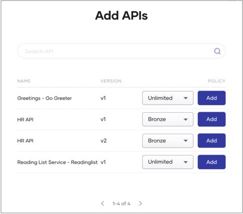 Click Add to subscribe to an API. You can subscribe to one or more APIs based on your requirements.