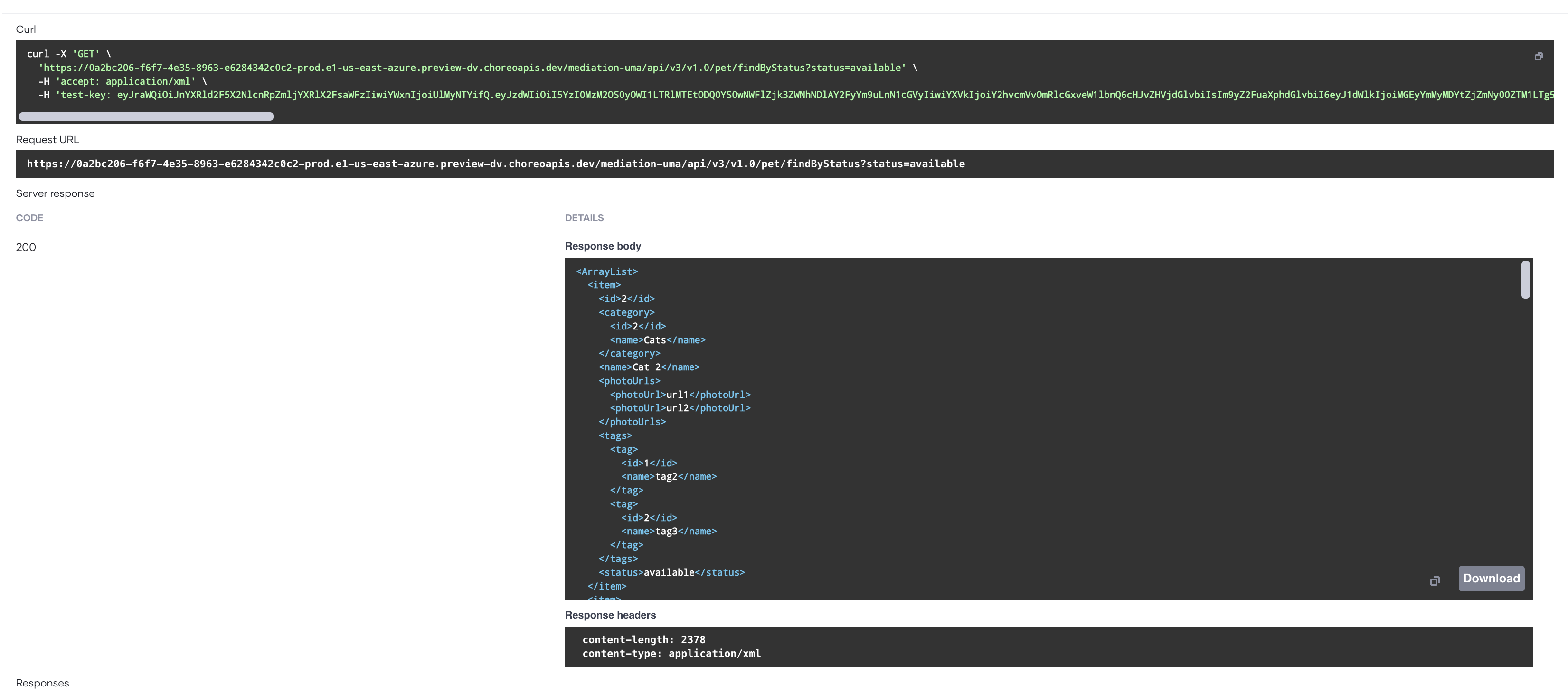 WSO2 Developer Platform allows you to test your API proxy using either the integrated OpenAPI Console or cURL. In this guide, you will use the OpenAPI Console.