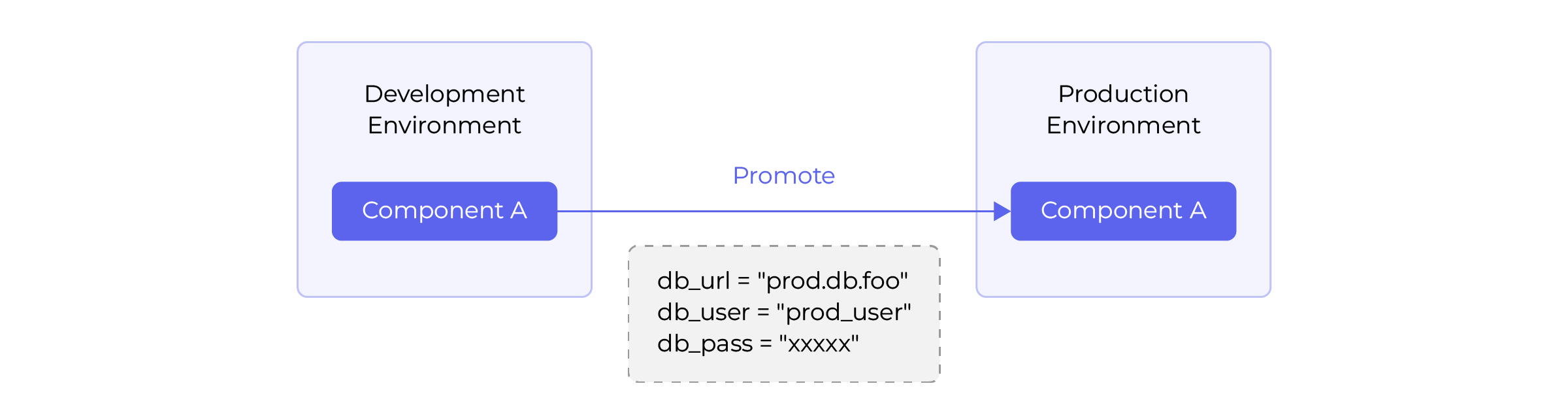 The following diagram illustrates how a component is promoted across environments.