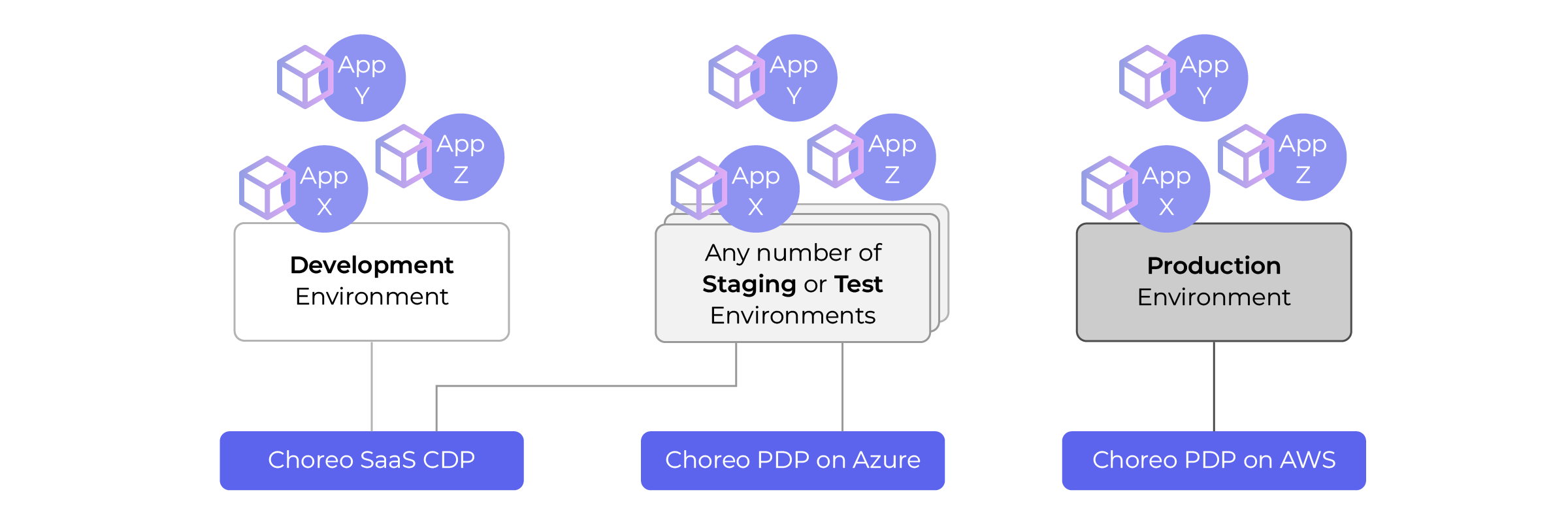 It is not necessary to use a different cluster per environment. You can create multiple environments on the same cluster. The above diagram is an example of a specific solution. Your application architecture may require a different configuration than what is depicted.