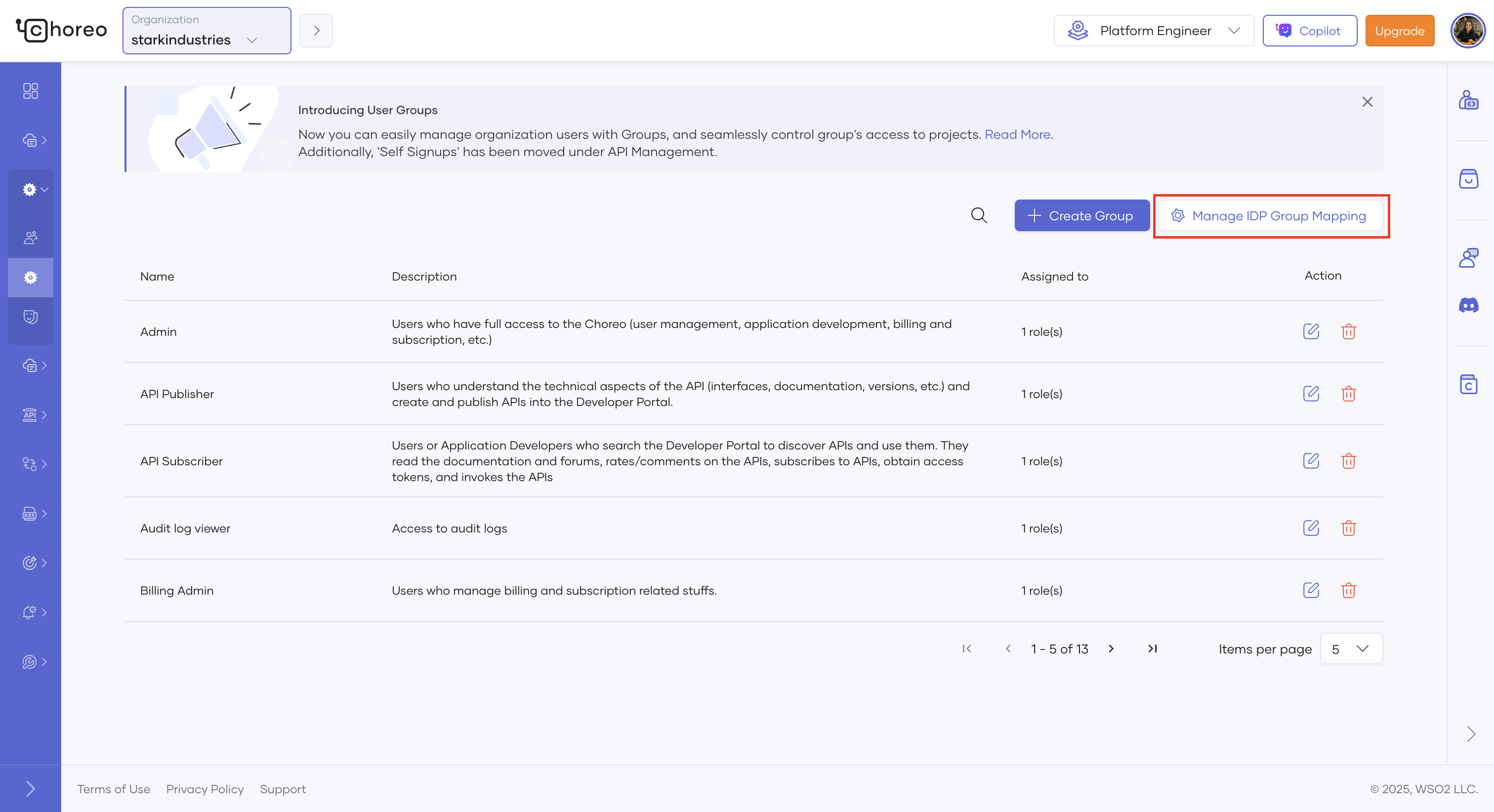 Step 2: Map WSO2 Developer Platform groups to enterprise IdP groups via the WSO2 Developer Platform Console¶