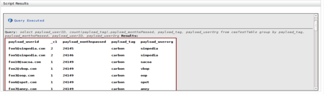 payload_tag, payload_userOrg from casTestTable group by payload_tag,