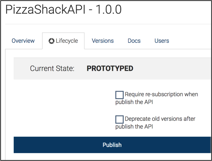 - Deprecated state - With continuous improvements, some APIs need to be updated with latest practices. In those kinds of cases, an API can be “Deprecated” and API developers can develop a new version based on the updated technology. However, to minimize the impact on existing consumers, API publishers can make allow existing subscribers to use the API until they upgrade to the newer version. No new subscriptions are allowed for a deprecated API.