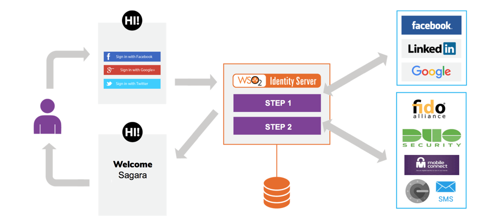 For example, it is possible to provide authentication with multiple options or multiple steps. A user may authenticate via Facebook and then as the 2nd factor, the user can be authenticated via GSMA Mobile Connect. Such configurations are straightforward in CIAM tools are usually supported as configurations or UI wizards.