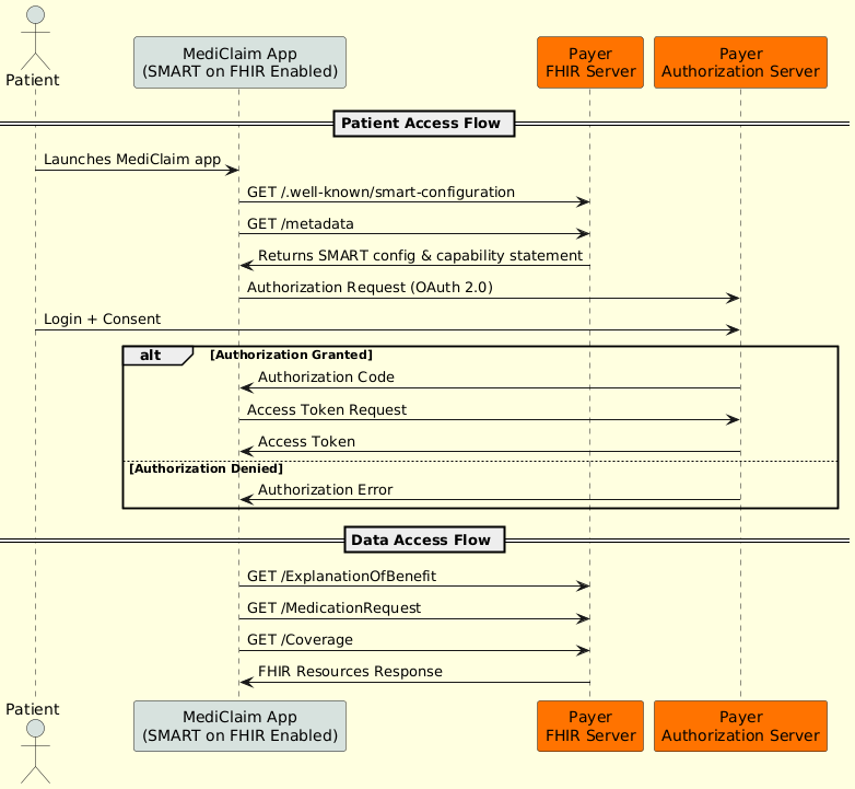 Figure 1: Sequence diagram of the Patient Access API workflow