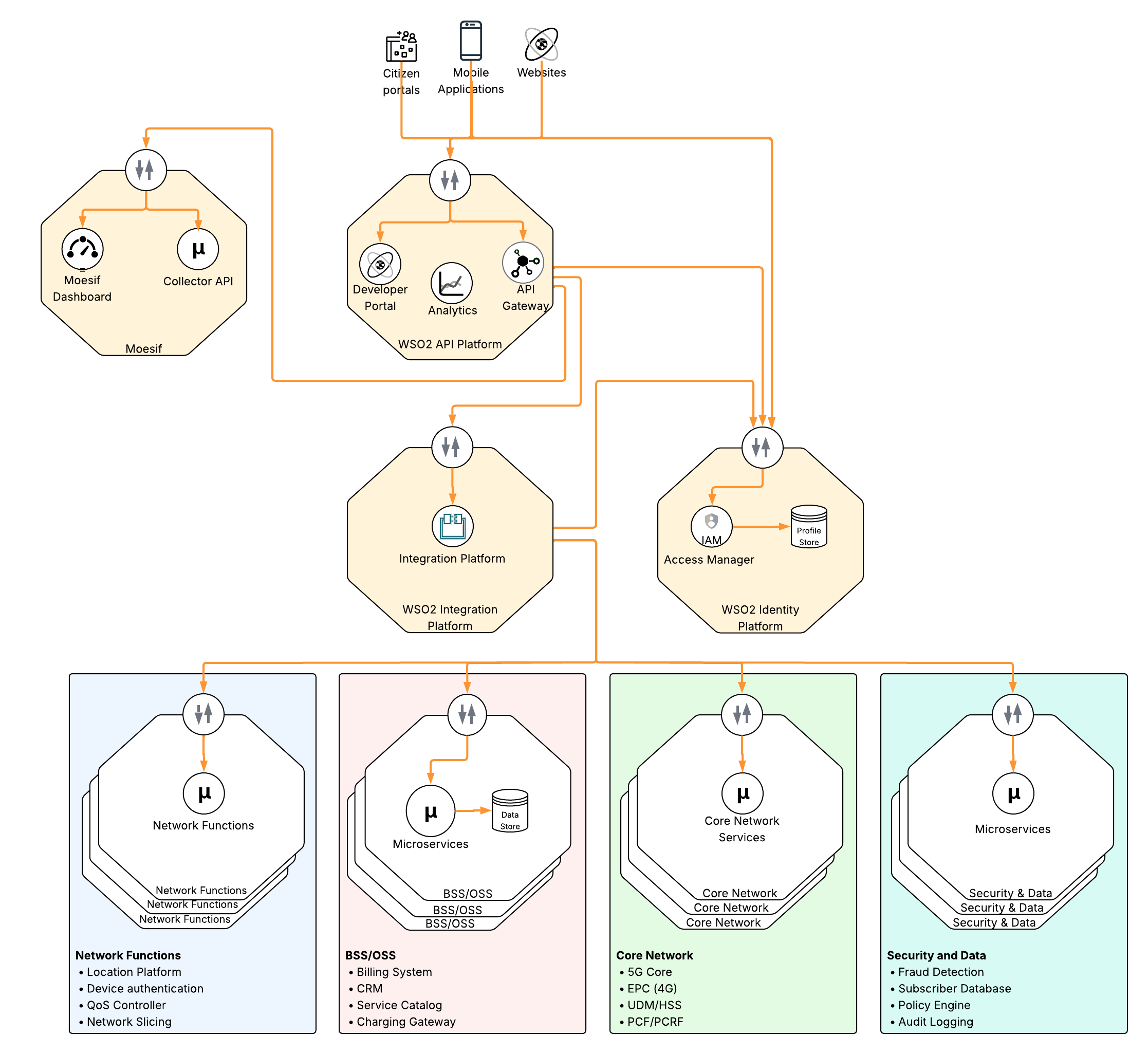 Moesif is an API analytics and monetization platform that is part of the WSO2 product suite. The integration of Moesif with the API Platform transforms the solution into an intelligence engine that converts API traffic data into a format that can be used for business level decision making. By introducing Moesif into this architecture, the operator gains the ability to treat network capabilities as metered digital assets, facilitating sophisticated monetization strategies and deep behavioral insights that are essential in today’s competitive markets.
