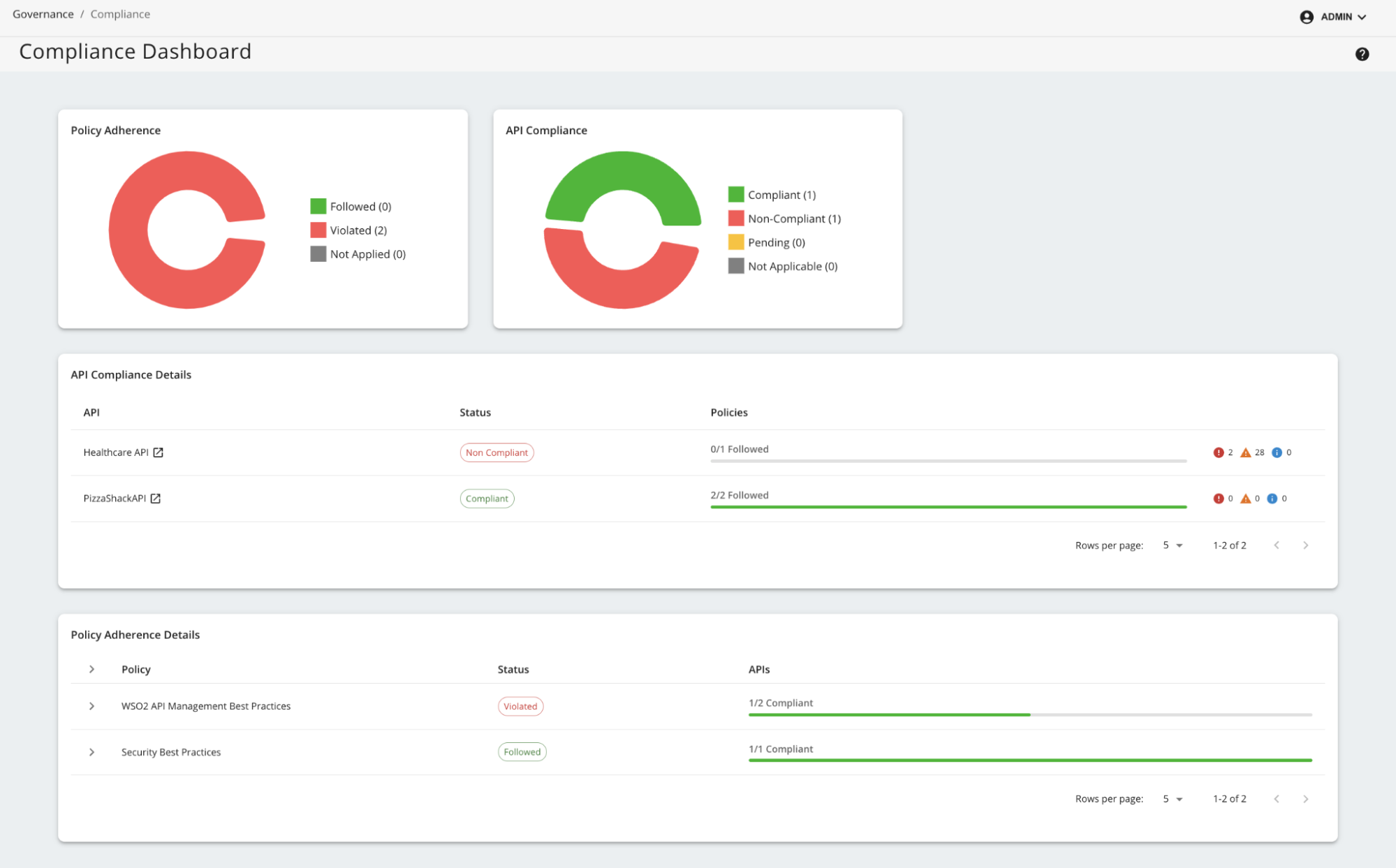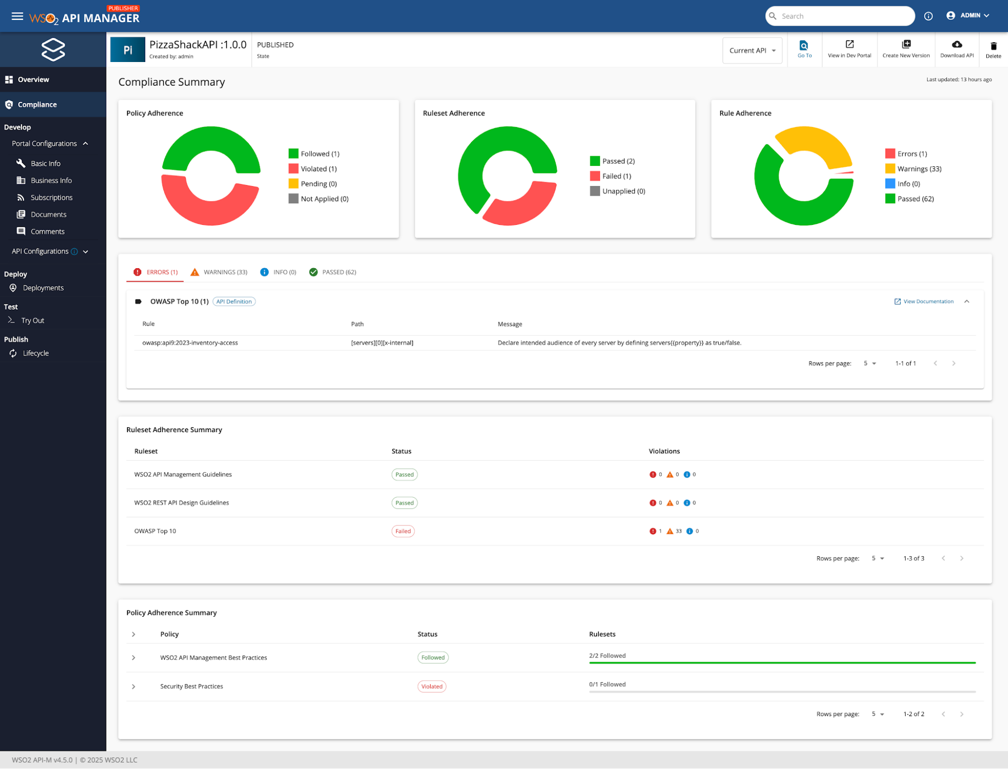 In addition, API creators and publishers have access to a dedicated compliance section within each API, allowing them to monitor and address governance issues during development.