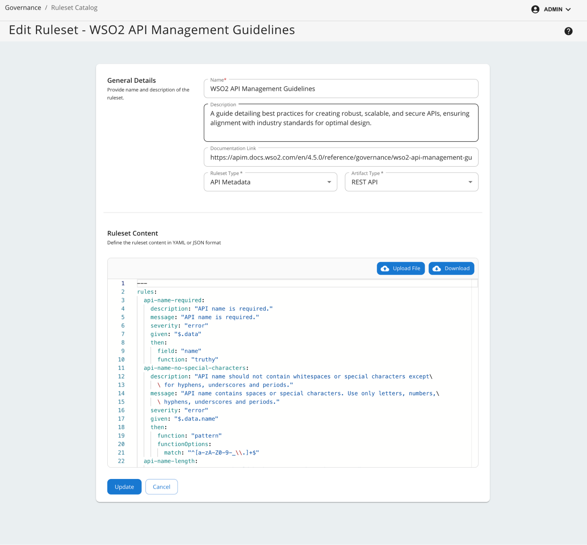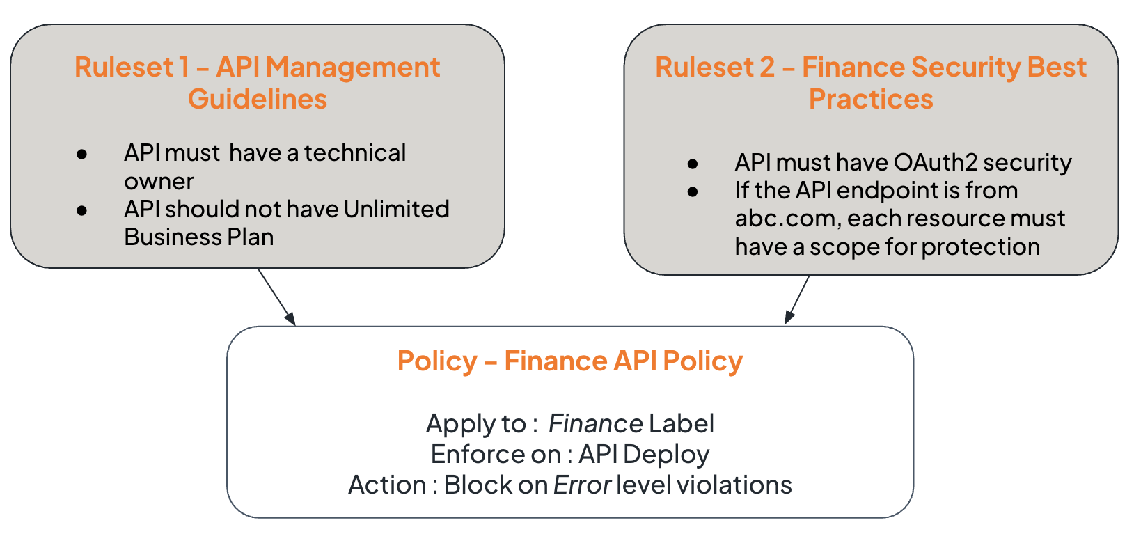 - Defining Rulesets – Governance rules can be defined and grouped into rulesets to validate key aspects of APIs, such as documentation, security and versioning.
