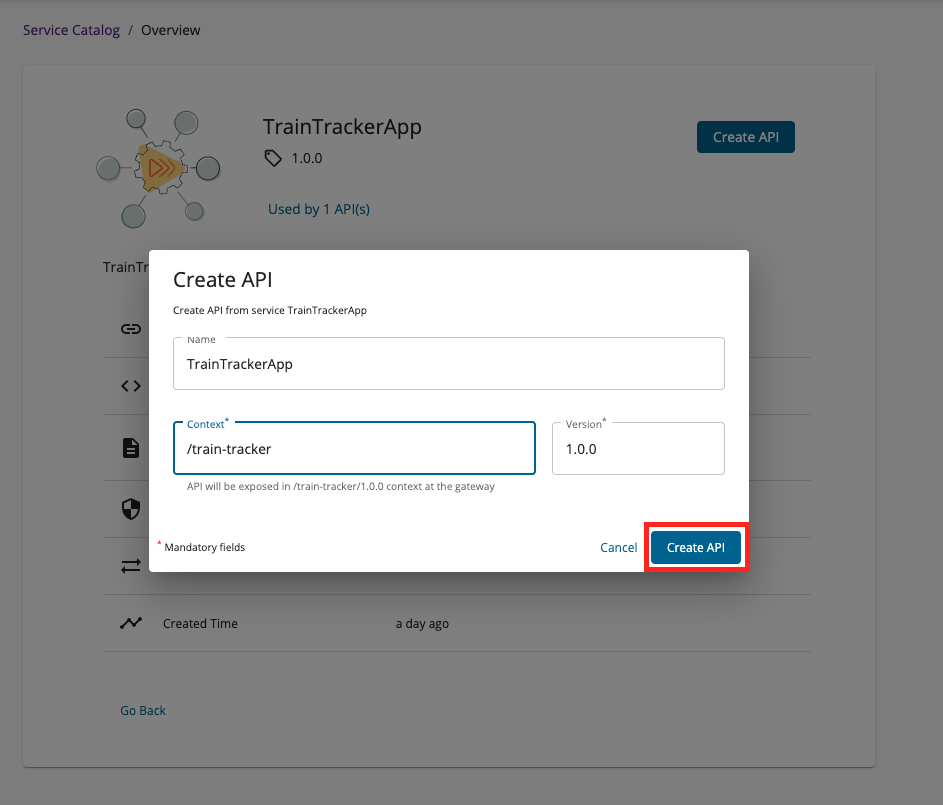 - Click Services to view the Service Catalog, and you’ll see TrainTrackerApp.