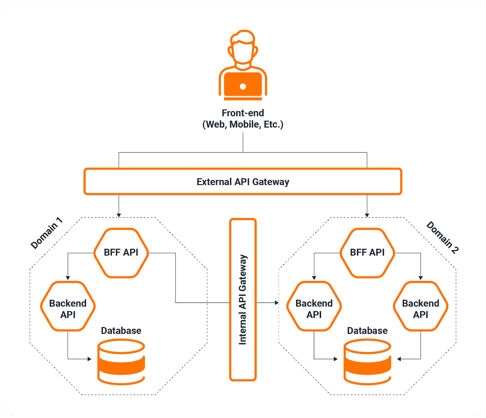 Now, when we work in development, especially in the early phases, we may call our API directly from the front-end. But, when we start to transition more towards making it production ready, we need to think about other things such as: