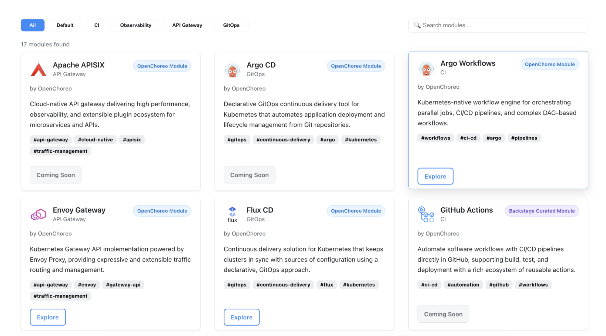 OpenChoreo is modular by design, allowing platform teams to choose the tools that fit their environment.
