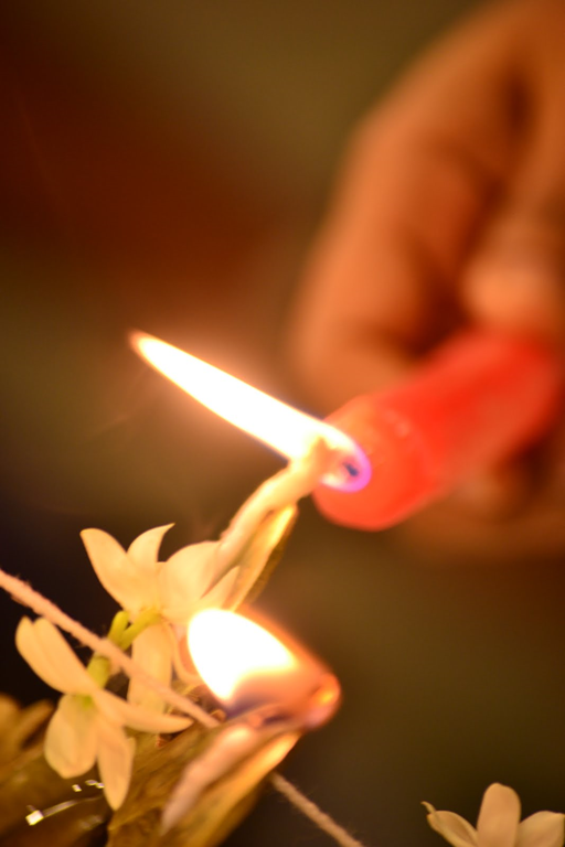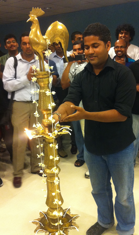 As customary, the opening ceremony includes employees at all levels who take turns lighting wicks in the jasmine-flower strung brass oil lamp. The lighting of the five-foot lamp symbolizes the dispelling of ignorance (darkness), replacing it with knowledge – the greatest of all forms of wealth in Sri Lanka. The lamp is topped by an image of a rooster further reinforcing the dawning of light as well as good fortune.